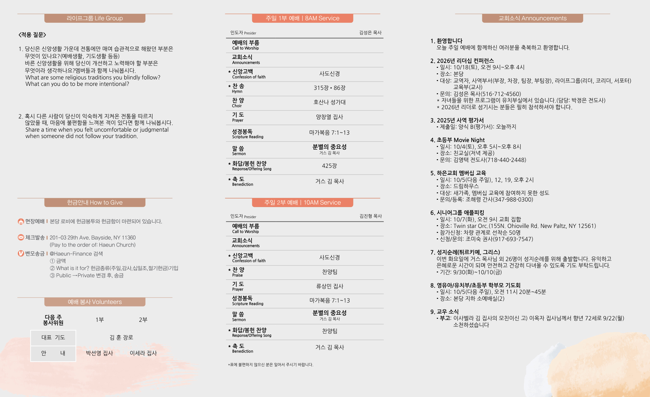 September 28, 2025 Haeun Church