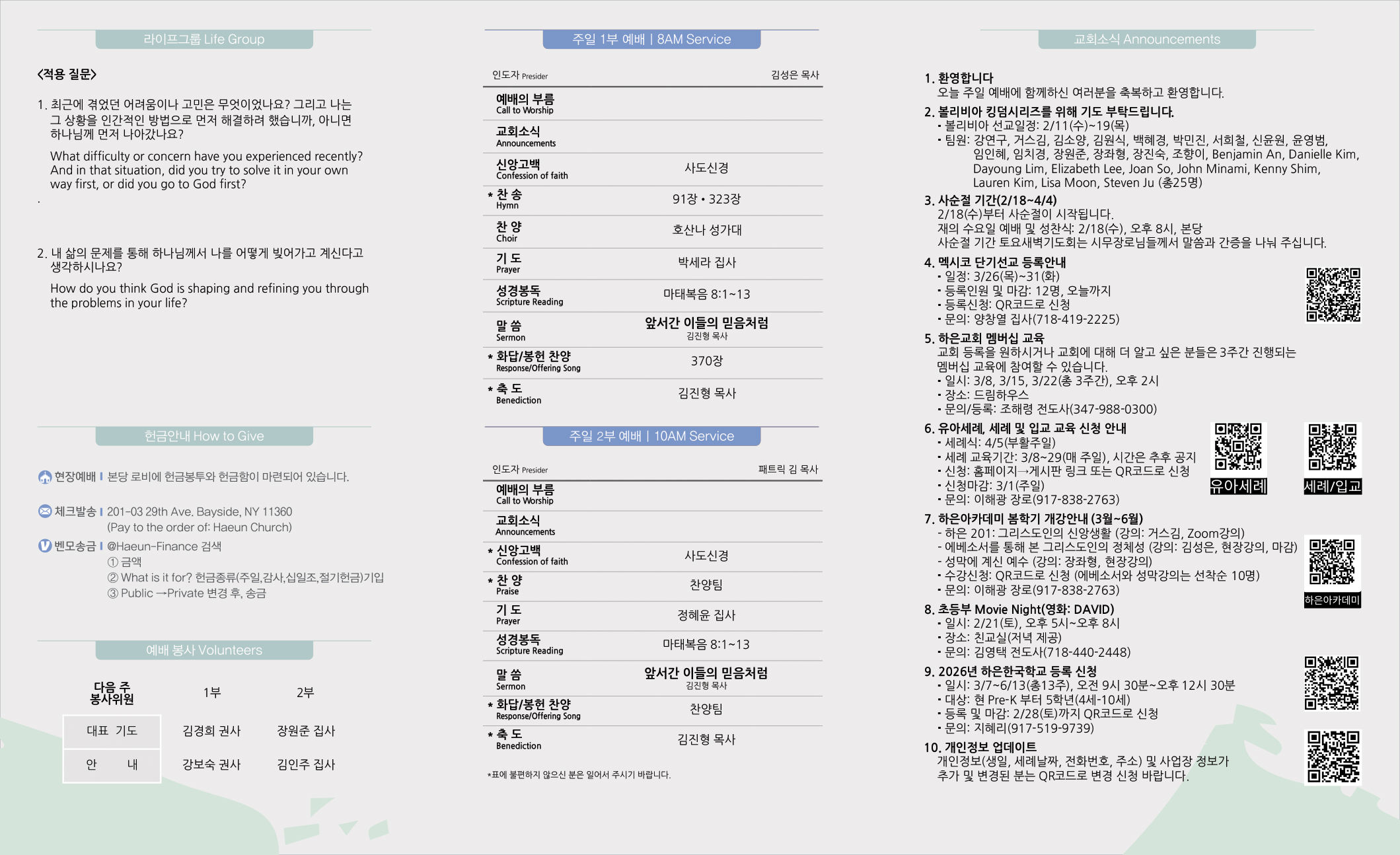 예배 안내